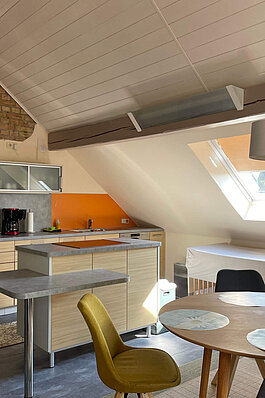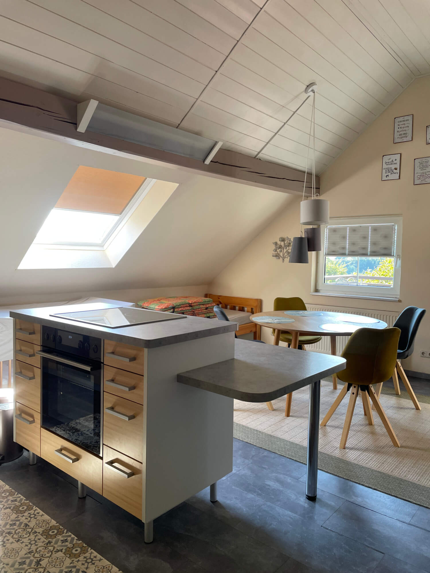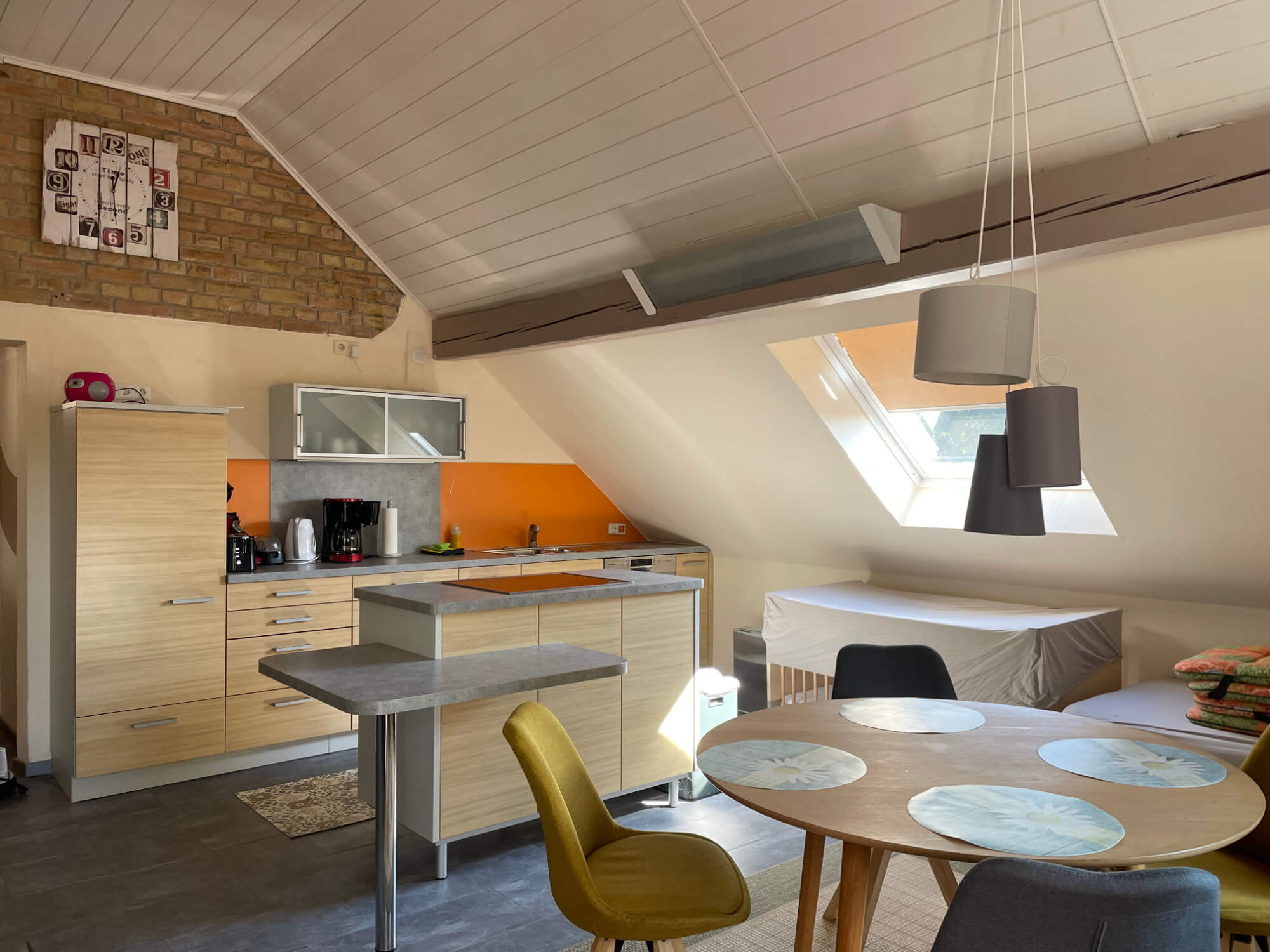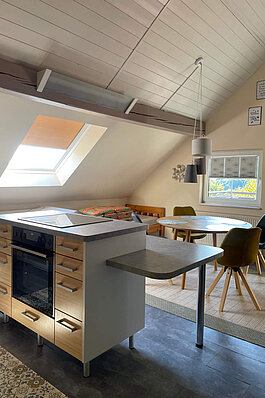 - Komplett eingerichtete Wohnküche mit Sitzecke und gemütlicher Schlafcouch