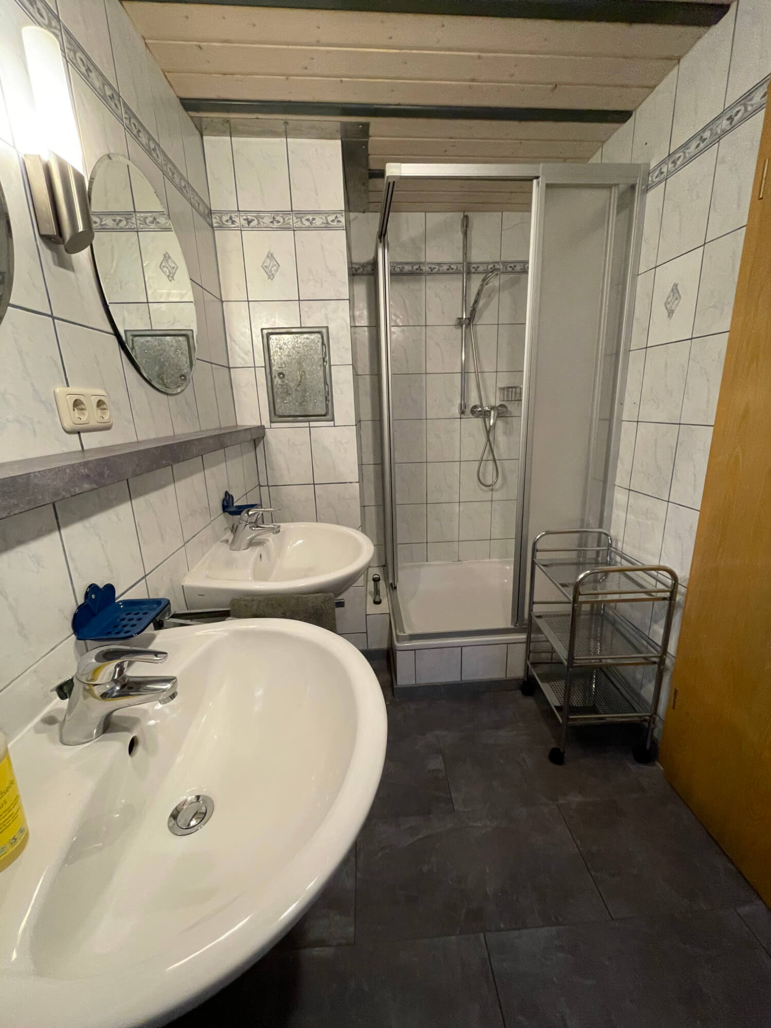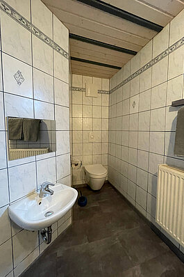 - Badezimmer mit WC/Dusche, separates Kinderwaschbecken, Handtücher, Fön
