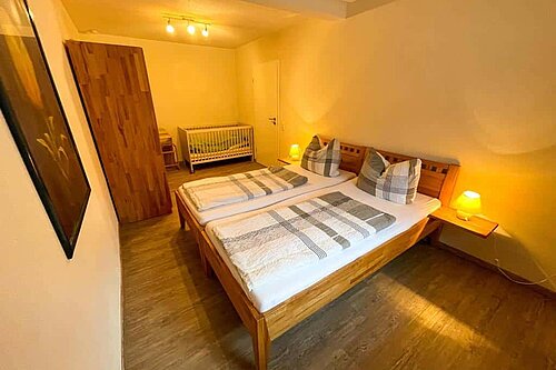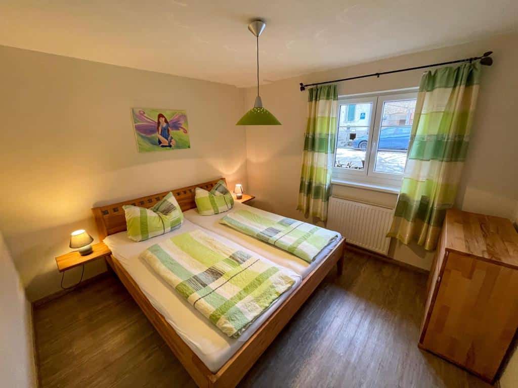 - Ein Schlafzimmer mit Doppelbett