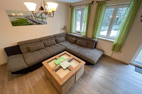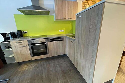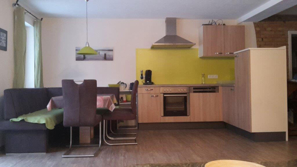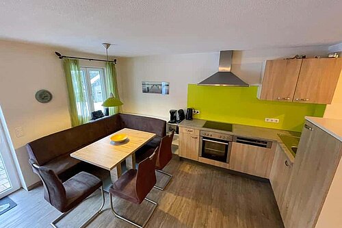 - Komplett eingerichtete Wohnküche mit Sitzecke und gemütlicher Schlafcouch